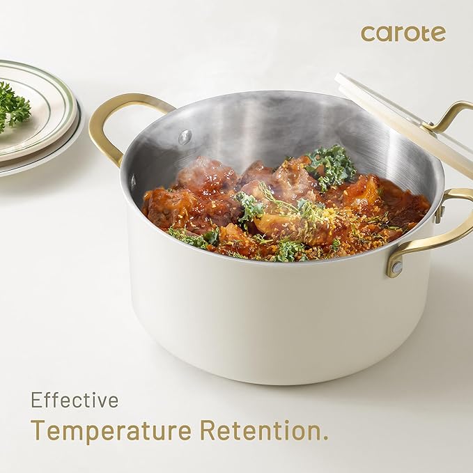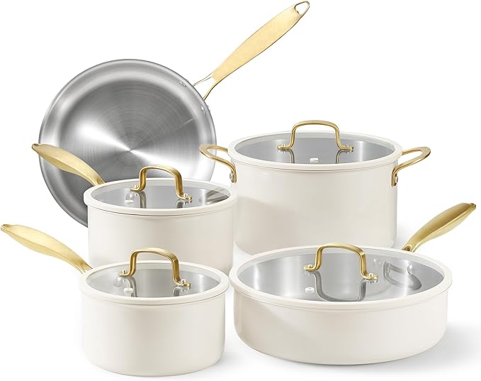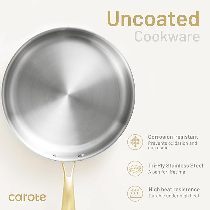 • 𝐑𝐄𝐃𝐔𝐂𝐄𝐃 𝐂𝐎𝐎𝐊𝐈𝐍𝐆 𝐓𝐈𝐌𝐄: Thanks to its fast and even heating capabilities, tri-ply stainless steel cookware can help reduce overall cooking time, as heat is efficiently transferred to the food being prepared.