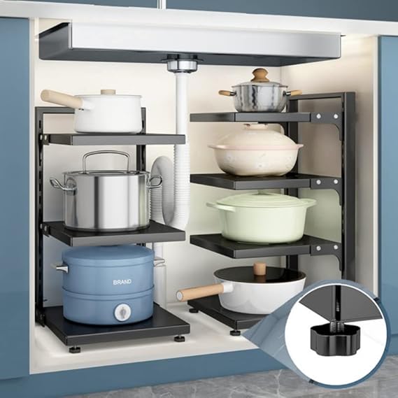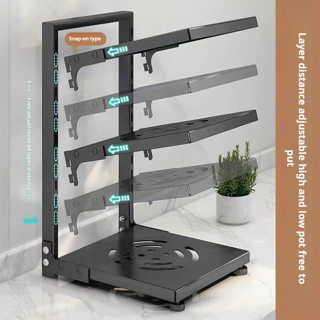 ● Adjustable: This pots and pans organiser for the cabinet can adjust the tiers to accommodate pots of various heights.
