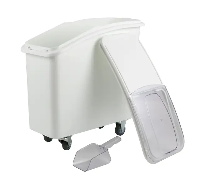 This bin is perfect for storing large quantities of dry ingredients under counters or in storage areas. A durable lid is designed to lock in freshness while keeping contaminants out. With an included scoop to help dispense your products, this ingredient bin is the perfect bulk storage solution your kitchen needs. The scoop stays in one designated area to reduce the risk of cross contact between the food and food container.
