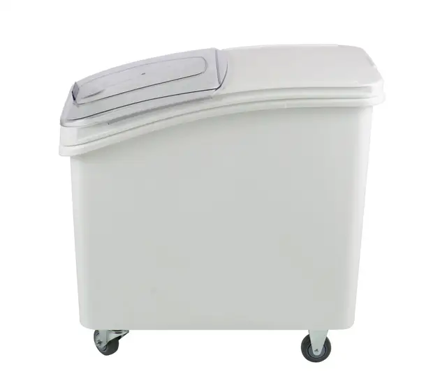 Sliding Lid: To keep your ingredients fresh and protected, this bin features a rounded clasp sliding lid. This allows the user to have easy access to your ingredients without moving the bin out from under a counter. Additionally, the front lid slides back over the polyethylene base, preventing debris from falling off the lid and into the bin.