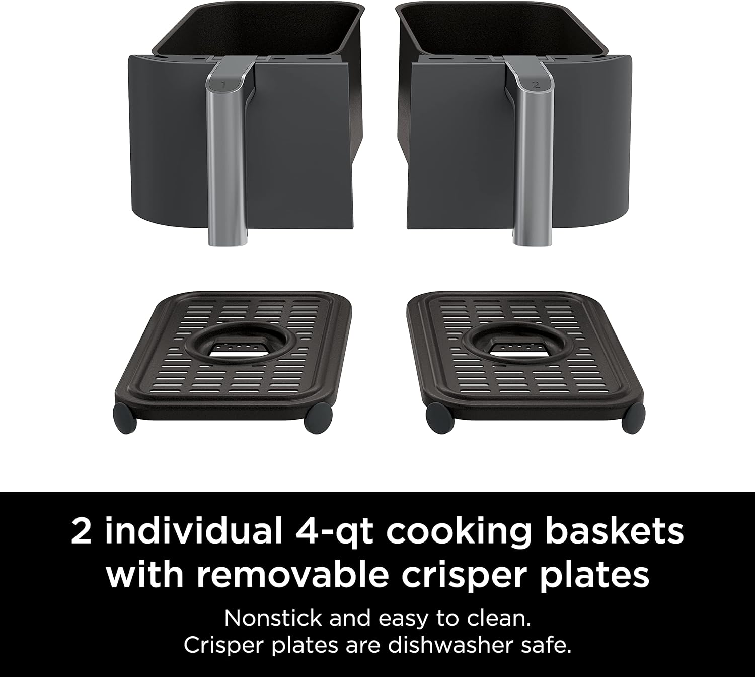 - EASY TO CLEAN: Includes nonstick cooking baskets and dishwasher-safe crisper plates.Â