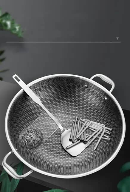 Wok Large Handle Non-Stick Cookware (44CM) – 7-layer stainless steel wok with ergonomic handle, scratch-resistant surface, even heating, and compatible with all stoves.