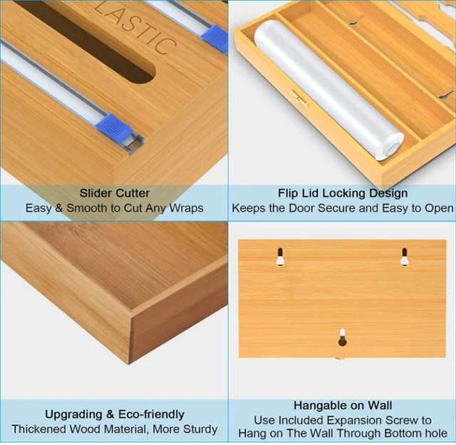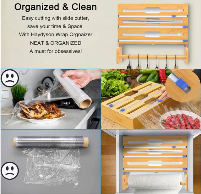 Organized, Space-saving: Keep your kitchen organized and save valuable counter space with this upgraded foil Bamboo dispenser. Its versatile compartments neatly store and dispense different types of wraps and papers, eliminating clutter and maximizing efficiency.